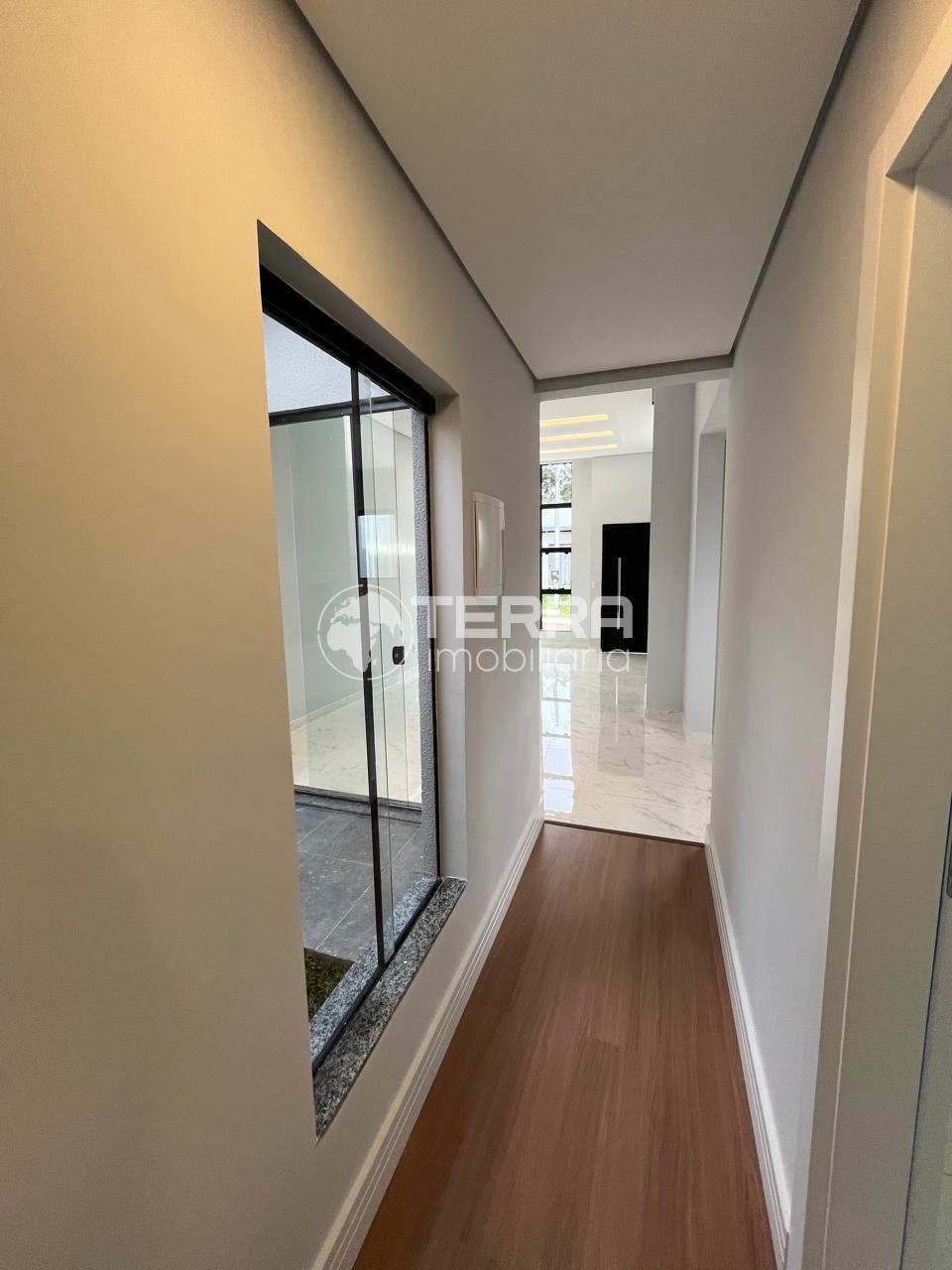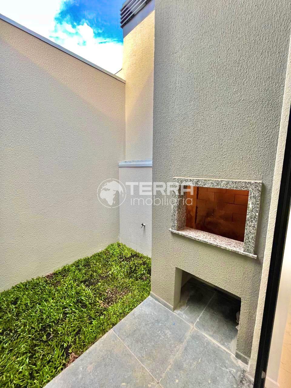 Área: 84,31 m² 3 quartos com pisos laminados (sendo uma suíte) Banheiro social Sala e copa integrada (com pé direito alto) Sala com lareira Churrasqueira e área gourmet Lavanderia Garagem Laje e Drywall (em todos os cômodos) Condomínio Salão de festas Portaria 24hs Monitoramento Playgrounds Bosque Churrasqueiras ao ar livre.